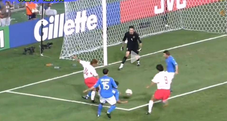 比赛伊始,开场仅仅三分多钟,韩国队便获得了一个点球。然而,安贞焕主罚的点球被意大利门将布冯精准扑出。这个点球判罚本身便充满争议,意大利球员帕努奇似乎并未有明显的犯规动作,而布冯之所以能扑出点球,很大程度上也是因为他对裁判此番判罚感到极度不满。