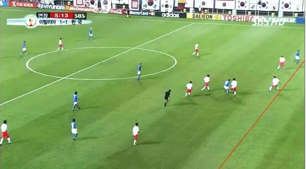 韩国球员的恶意犯规层出不穷:柳相铁肘击科科,致其血流满面,却未受任何判罚;金太映肘击皮耶罗,裁判对此视而不见;黄善洪背后飞铲赞布罗塔,导致后者受伤离场,仅被判普通犯规,连黄牌都没有出示;而李天秀在禁区内直接踢中马尔蒂尼的头部,动作极具危险性,裁判依然无动于衷。