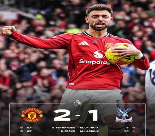 曼联在老特拉福德2-1逆转水晶宫,排名超越阿斯顿维拉位列英超积分榜第三位。布鲁诺·费尔南德斯下半场发挥关...