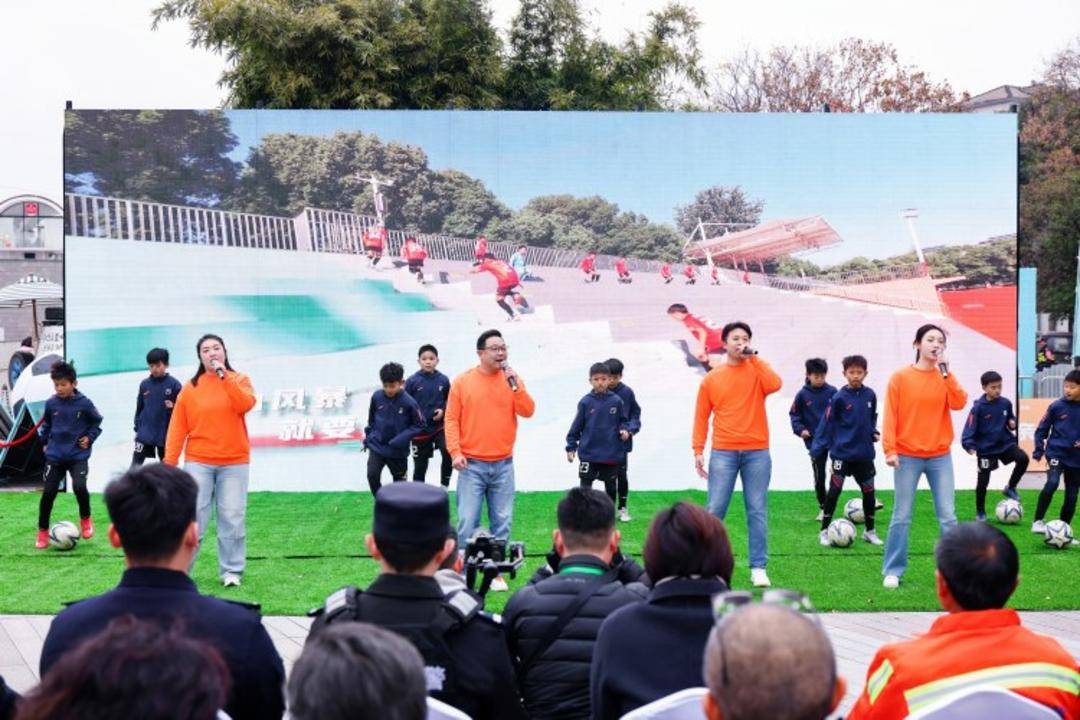 活动现场,开场精彩集锦视频《苏超的夏天》带着大家回到故事最开始的地方,江苏铁杆球迷会和江宁区龙都中心小学的同学们表演鼓乐《鼓舞金陵》热力蓬勃,今年6月,南京市游府西街小学浦口分校足球队在“省长杯”青少年校园足球联赛中夺得小学男子乙组冠军,足球小将们现场唱响《火力全开》,更让观众看到南京青训未来。