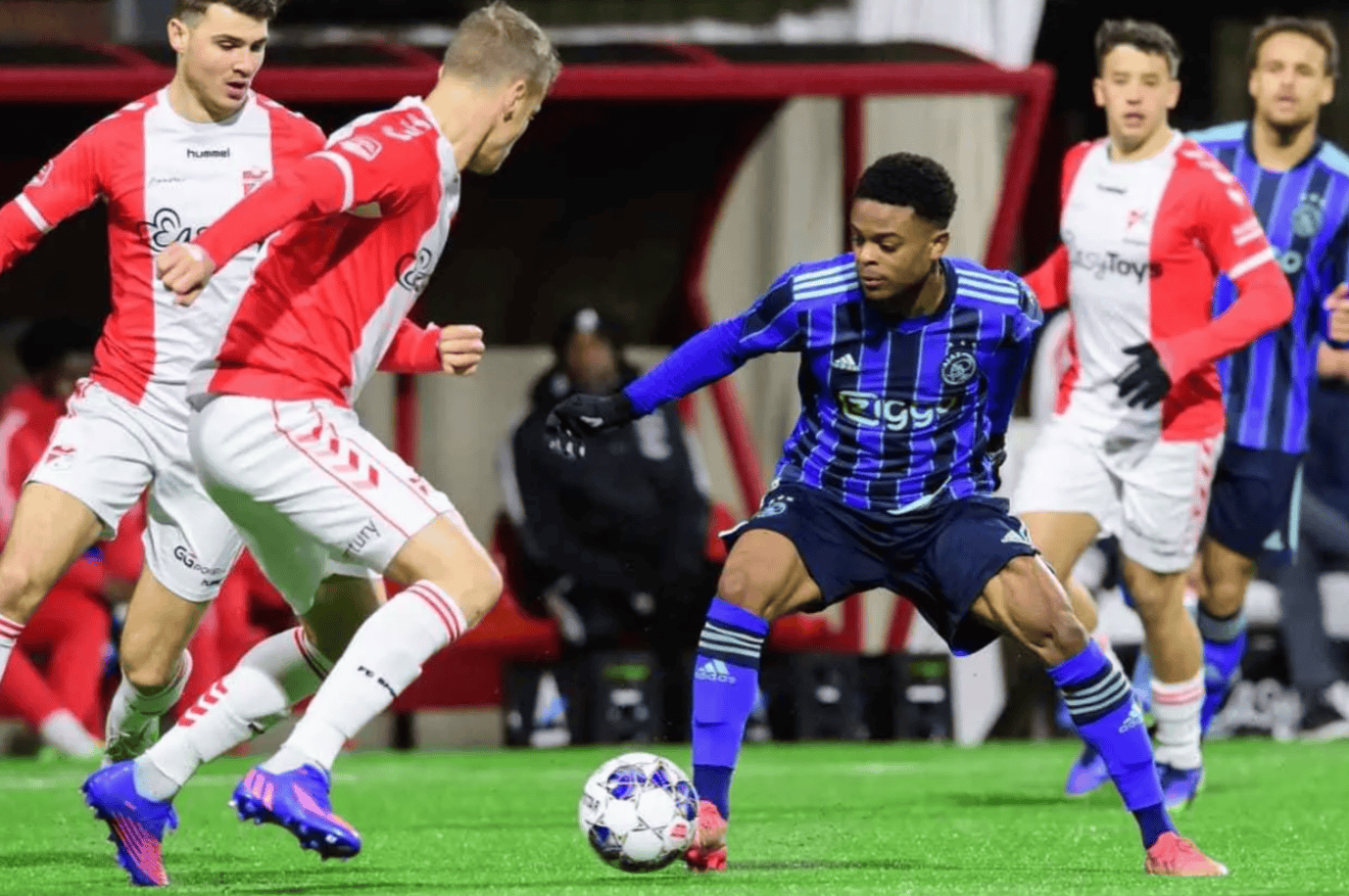 阿贾克斯目前以15胜3平2负高居积分榜第二,仅落后榜首费耶诺德1分。球队近5轮联赛轰入14球且仅失2球,攻防两端均展现统治力。新援中锋布罗贝状态火热,近3场贡献5球2助攻,其支点作用与门前嗅觉成为破局关键;中场核心库杜斯的调度与远射能力则进一步丰富进攻层次。反观特尔斯达,虽保级无忧,但近10场仅赢2场,进攻端依赖边路传中,效率低下,防守端则因中卫转身慢屡被对手打穿。